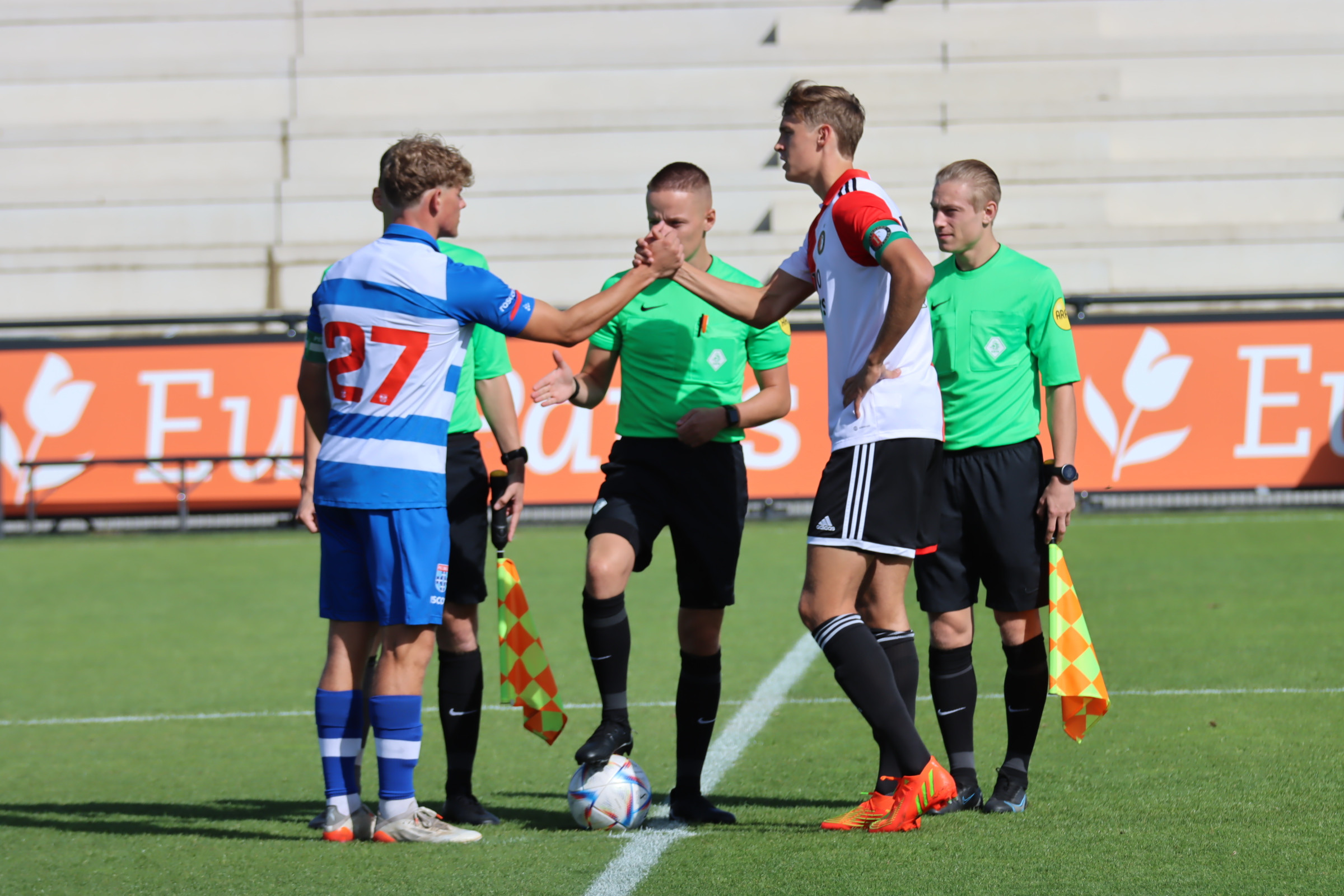 Opstelling Feyenoord Onder 21: Kroesen; Van Veldhoven (63’ Zechiël), Valk, Hokke, Kleijn (63’ Van der Zeeuw); Karim, Milambo (66’ El Moussaoui), Naujoks; Slory, Groen (38’ Amyn), ‘t Zand.