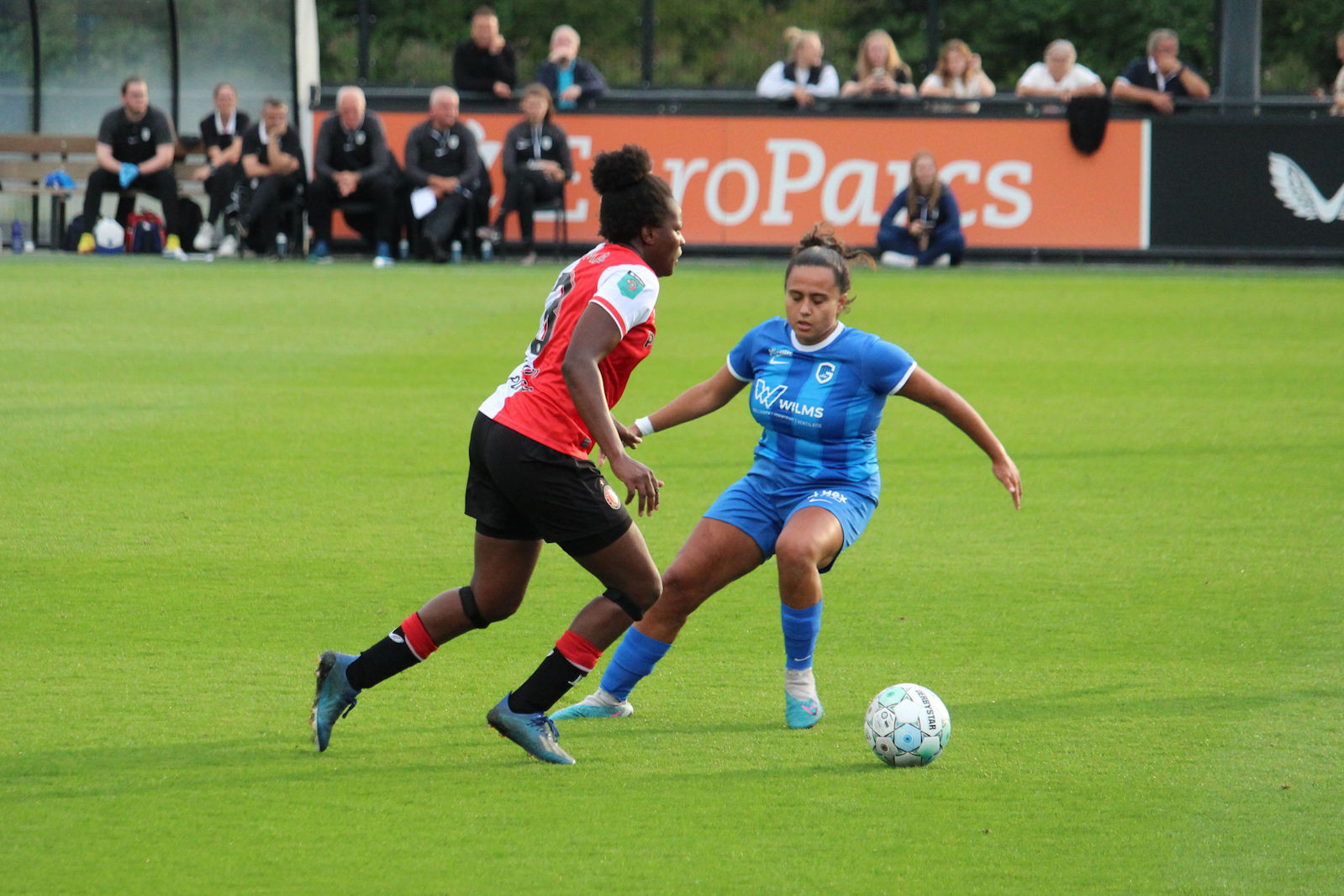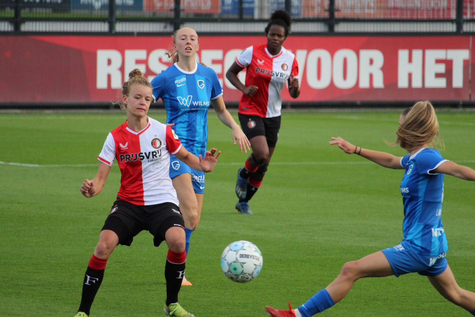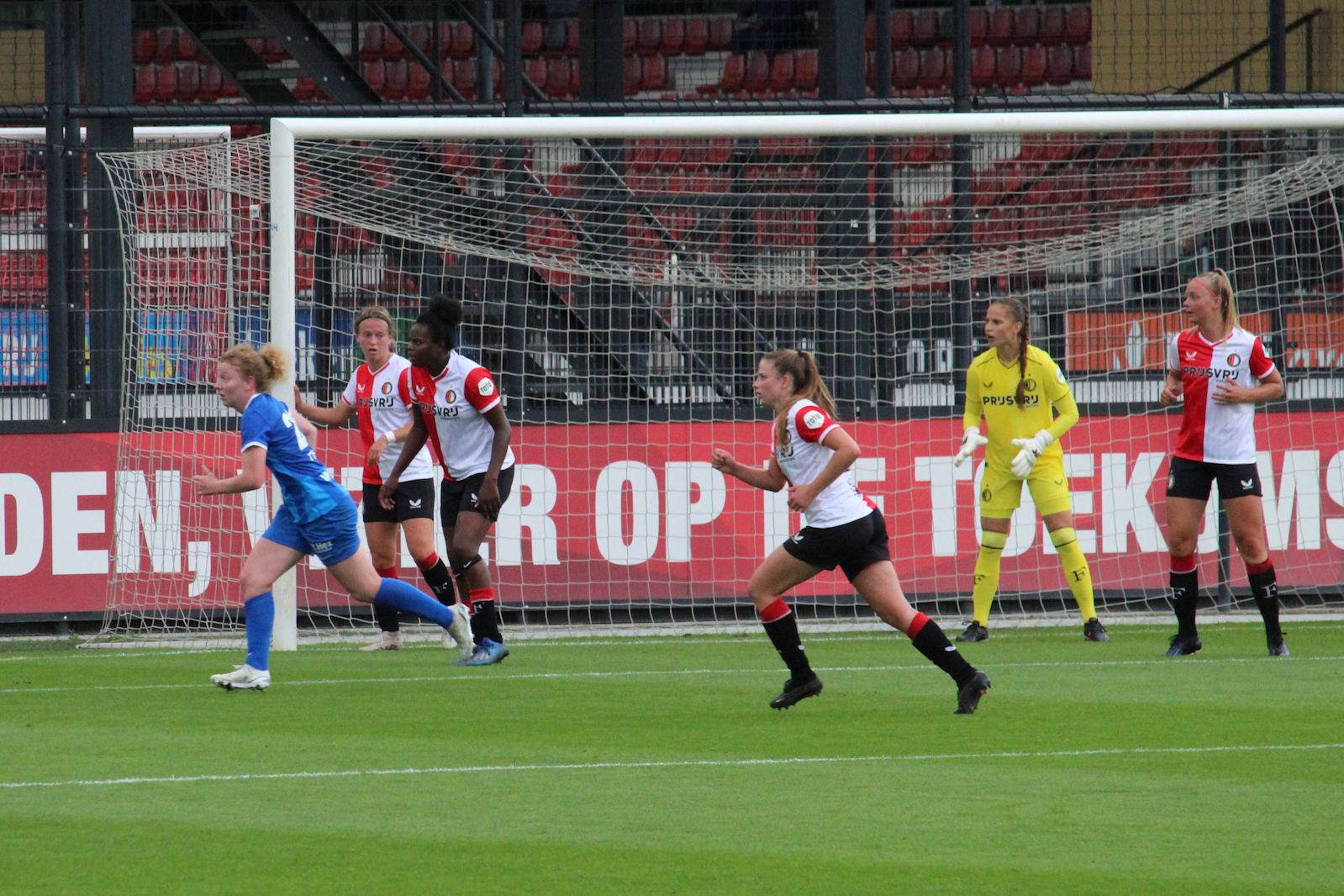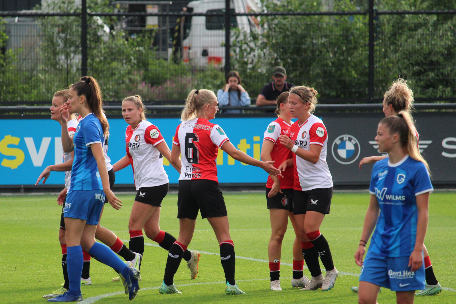 Gisteren speelde Feyenoord V1 de tweede wedstrijd in de voorbereiding thuis tegen KRC Genk uit België. Op het 2e veld van Varkenoord werd het 3-2. De doelpunten voor Feyenoord zijn gemaakt door Esmee de Graaf, Maxime Bennink en Zoï van de Ven. Hieronder de foto's van de wedstrijd.